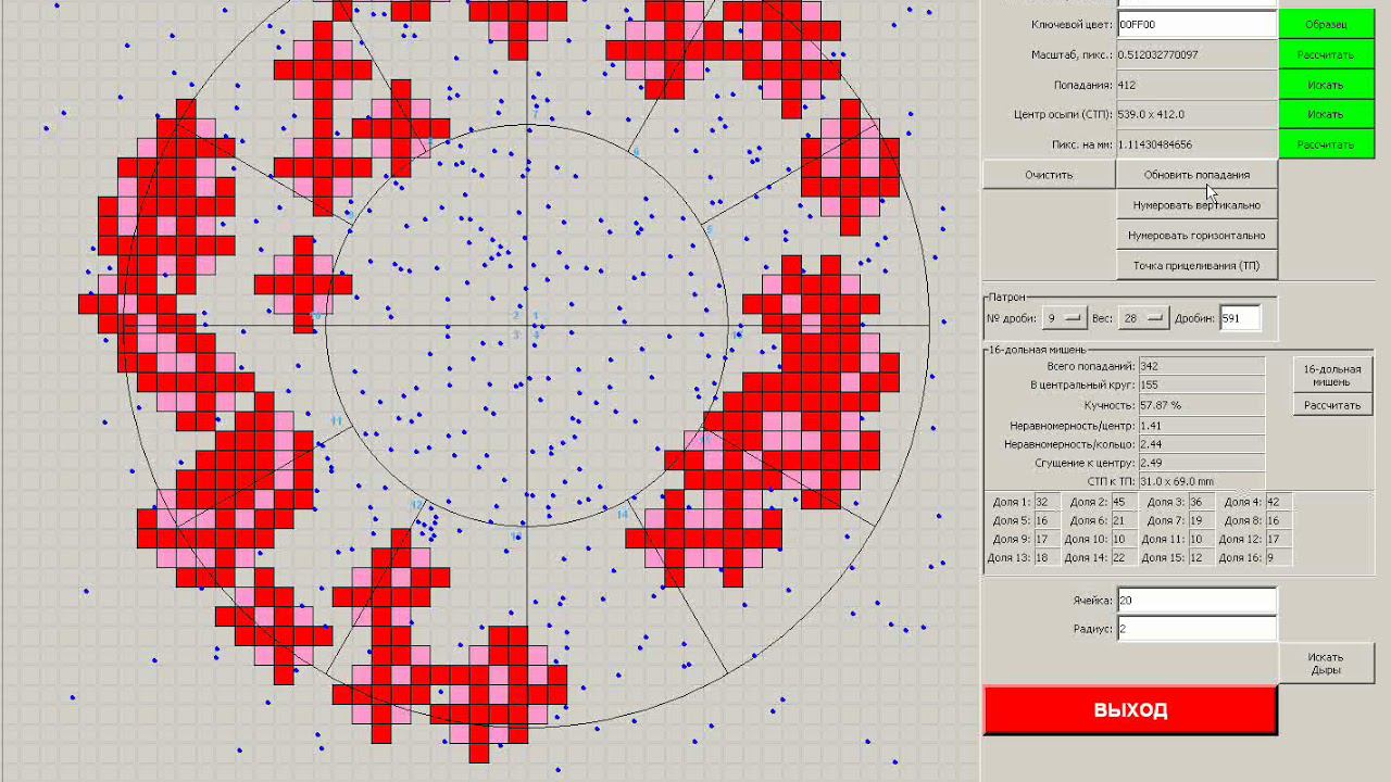 Программа для обработки дробовой осыпи ружья. Версия 0.3. Испытание