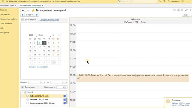 Бронирование помещений в 1С: Документообороте 3.0