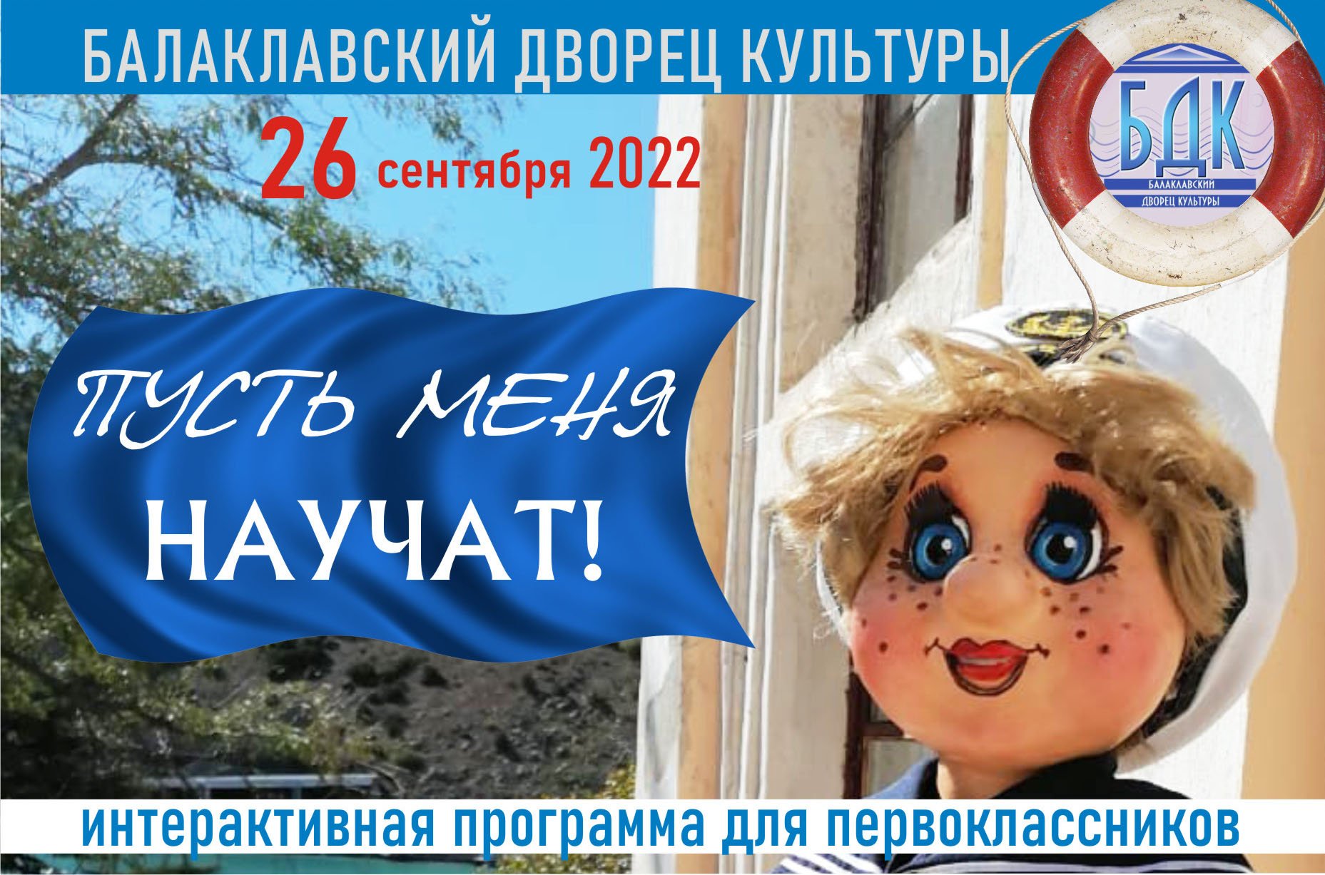 Наш праздник для первоклассников «Пусть меня научат» удался на славу! Ребята из шести первых классов балаклавских школ №25 и 30 до отказа наполнили зал! Вместе с Машей из мультфильма «Маша и медведь» они пели алфавит, угадывали загадки Симки, ловили большой голубой шар, танцевали матросский танец и танец пиратки Барракуды, с огромным вниманием следили за яркими фиксиками. Сам легендарный Сева Севастопольский (кукольный герой из передачи НТС «У матроса есть вопросы»), которым управляет Людмила Суханова, пришел пожелать первоклашкам счастливого плаванья в мир Знаний. А ребята из ансамбля «Мир надежд» под руководством Надежды Мироводовой «прилетели» на космическом корабле, чтобы спеть свои лучшие песни. Мы благодарим режиссера – Валентину Шастину, звукорежиссера Александра Батрака, осветителя Тимофея Семенова, ведущую-исполнительницу роли Симки – Ольгу Яковлеву и всех ребят-участников творческих коллективов Дворца.