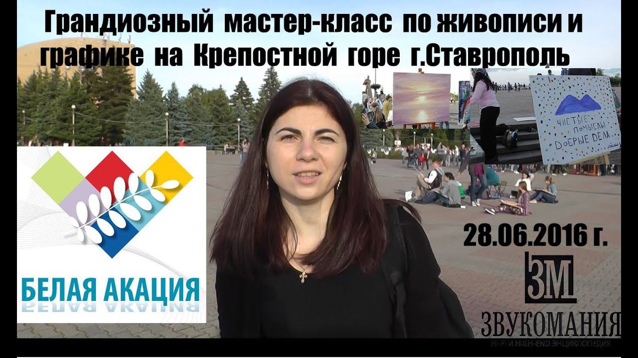 Белая акация Ставрополь 28.05.2016г. Звук записывался на стерео-микрофоны Панасоник. Наш сайт: http://zvukomaniya.ru/ эл.почта: anl555@bk.ru Моя страница ВК https://vk.com/id104002989 Моя страница ОК http://ok.ru/aleksandr.levchuk2 Мои группы ВК https://vk.com/vintagehighend https://vk.com/zvukomaniya Грандиозный мастер-класс по живописи и графике на Крепостной горе у поющего фонтана. Известные художники края, среди которых такие имена, как: Сергей Паршин, Евгений Кузнецов, Василий Поляков и Владимир Грибачёв, делятся секретами своего мастерства. Каждый из них импровизирует на огромном трёхметровом полотне.