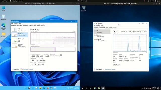 Windows 11 vs Windows Server 2019: RAM + CPU Usage