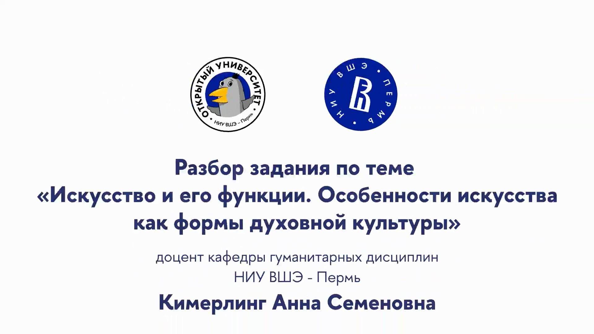 Разбор задания по теме «Искусство и его функции. Особенности искусства как формы духовной культуры»
