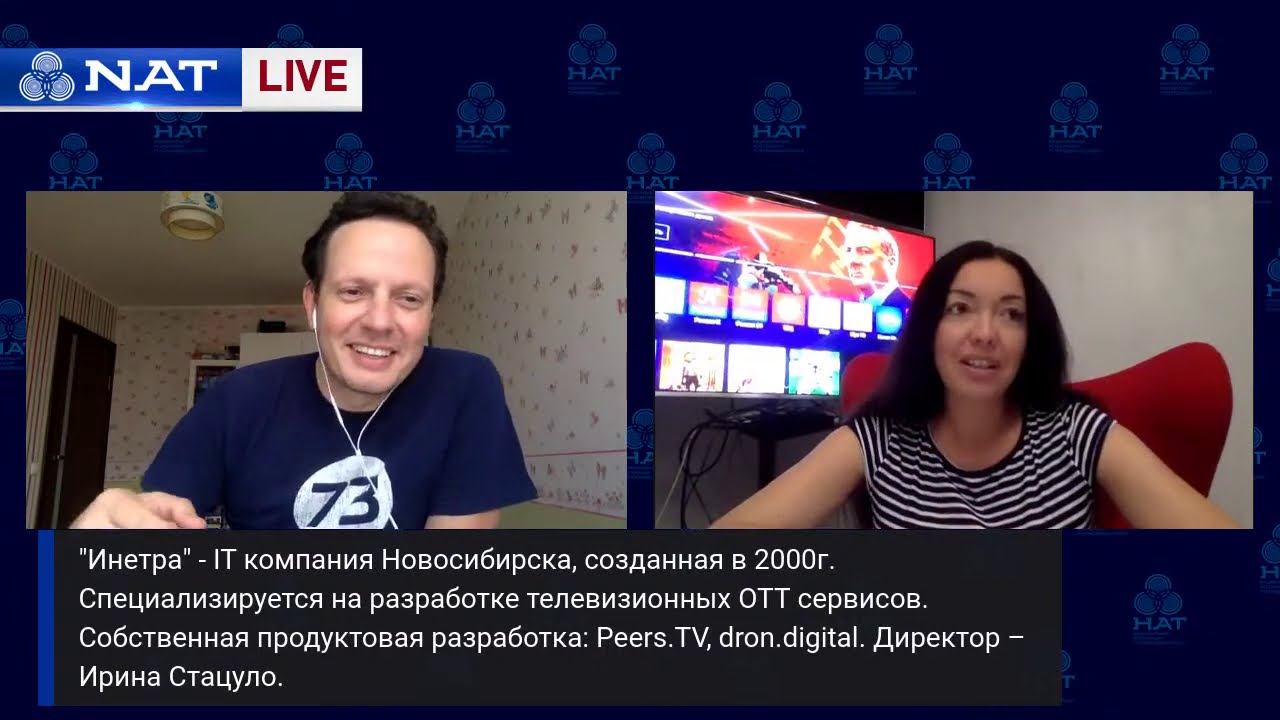 Лайв-интервью с директором OTT-сервиса Peers.TV Ириной Стацуло -- 00:00 Начало видео 00:40 – Вводная часть (Александр Широких) 01:40 – Представление гостя 02:26 – Об ОТТ-сервисах (А.Широких) 03:21 – Ролик Peers.TV 03:45 – Представление партнера MediaHills 05:01 – Об «Инетре» и Peers.TV (Ирина Стацуло) 06:50 – О сложностях первых шагов платных ТВ-приложений (И.Стацуло) 07:57 – Как сейчас позиционирует себя Peers.TV? 10:26 – О взаимоотношениях с операторами 11:05 – Плей-лист оператора и заключение договора с оператором 12:17 – Есть ли аналогии со «Смотрешкой»? 12:48 – Анонсирование данных телесмотрения региональных телеканалов (А.Широких) 13:55 – Обращение к телеканалам (И.Стацуло) 15:41 – Ролик Peers.TV с комментарием И.Стацуло 17:36 – О статистике телесмотрения, данных для вещателей (И.Стцуло) 18:49 – О необходимости «личного кабинета» (А.Широких) 22:16 – О кемеровском «Большое ТВ» 22:51 – О статистике с разных платформ 23:23 – О перспективах «личного кабинета», предоставлении статистики (И.Стацуло) 25:07 – О существовании разбивки статистики по разным платформам 25:50 – Чем отличается Peers.TV от других ОТТ-платформ с точки зрения зрителя? (И.Стацуло) 27:37 – Вопрос о возможности стать партнером городскому каналу? 28:43 – Каковы условия вхождения на платформу? 30:15 – Круглосуточное вещание – есть ли особенности эфира на платформе? 31:26 – О разграничении территорий для эфира при соответствующих лицензиях 32:30 – Какие звуковые форматы использует сервис? 33:18 – Существуют ли в сервисе Peers.TV 4К-каналы? 34:15 – Планируется ли движение в сторону HD-вещания? 36:25 – Какова сейчас бизнес-модель? Как она реализуется? 38:18 – Как пандемия повлияла на рекламные продажи? 40:48 – О том, как поменялось телесмотрение во время пандемии 42:06 – О показе Peers.TV в гостиницах 43:03 – Есть ли идея о производстве собственного контента? 44:42 – Отток аудитории в пандемию больше у федеральных или региональных каналов? 45:26 – О вхождении на платформу спортивного youtube-канала 49:11 – Пояснение дальнейшему показу статистики телесмотрения (А.Широких) 49:50 – Показ слайдов со статистикой 50:30 – Топ новостных телеканалов за апрель-июль 2020 53:07 – Топ спортивных телеканалов за апрель-июль 2020 54:33 - Топ детских кабельных телеканалов за апрель-июль 2020 56:00 - Топ музыкальных телеканалов за апрель-июль 2020 56:43 – Топ региональных телеканалов по среднему количеству стартов в месяц за период апрель-июль 2020 58:53 – Что такое «старты в месяц»? (И.Стацуло) 01:02:21 – Как оцениваете сейчас свою активную аудиторию? 01:04:47 – Делаете ли событийные городские лайв-трансляции? 01:07:27 – Потоки на пользователей идут с одного или разных серверов? 01:08:33 – О технической доставке сигнала для новых каналов-партнеров 01:10:00 – Телеканалу нужно свое мобильное приложение? 01:11:50 – Как привлекаете новых пользователей? 01:13:30 – О статистике подписок на Peers.TV 01:15:00 – О проекте «Инетры» для «ЭР-Телекома» (новая версия приставки) 01:16:50 – Может ли телеканал каким-либо образом заработать с помощью Peers.TV? 01:17:59 – Подведение итогов эфира (А.Широких) 01:19:31 – Заключительные слова И.Стацуло