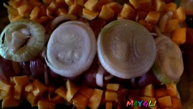 Кушать подано на сегодня. Индейка с луком. Грибы Голубки - рядовка белая голубиная. Картофель, запеченный в духовке.