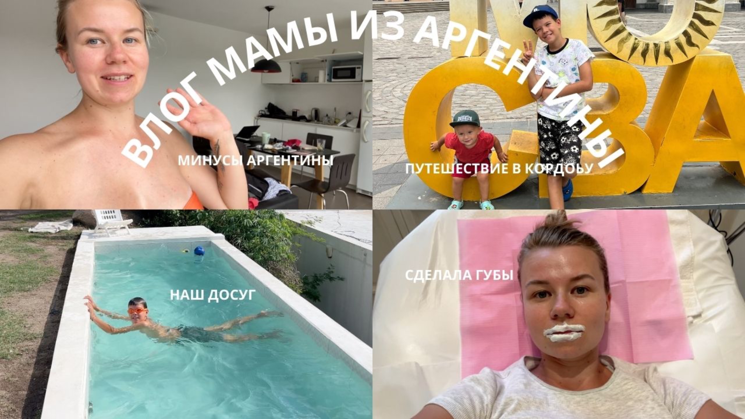 Привет красотки! 10. ВЛОГ МАМЫ ДВОИХ ДЕТЕЙ | путешествие на машине в Кордоба | сделала губы Влог получился как настоящий влог, очень лайтовый, настоящий и жизненный. Наше путешествие с двумя детьми в Кордоба, там не ищете пользы для путешественников, ее там нет, мы просто отдыхали и наслаждались нашими семейными днями вместе. В конце я сняла как делала губы, это уже не первый мой опыт. Приятного просмотра и увидимся в сеющее воскресенье в 10 утра по мск Я в социальных сетях: Youtube: https://www.youtube.com/@akimova.ksusha VK: https://vk.com/casadeksusha Дзен: https://dzen.ru/casadeksusha Рутуб: https://rutube.ru/channel/43044031/ Возможно вы искали: Аргентина, жизнь в Аргентине, роды в Аргентине, русские в Аргентине, Буэнос Айрес, влог Аргентина, влог Буэнос Айрес, мама, материнство, мама и малыш, уход за малышом, влог мамы, будни мамы, влог домохозяйки, домохозяйки, мама блогер, блогер, мама в декрете, досуг с детьми, досуг с малышом, монтессори, игрушки монтессори, развитие малыша, развитие ребенка, мама двоих, мама сына, мама мальчика, жизнь за границей, жизнь за границей с детьми, заготовки для малыша, прикорм, чем кормить ребенка 1 год, чем кормить ребенка 1,5 года, чем кормить ребенка 2 года, развивашки, игрушки для малыша, игрушки для 1,5 лет, игрушки 2 года, , развитие ребенка, развитие малыша