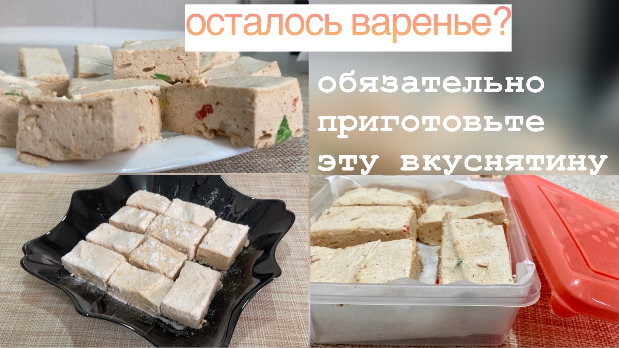 Всем привет. с вами Наталья. Скоро начнется ягодный сезон, будем закручивать варенье, а прошлогоднее перейдет на другие полочки "подальше" . Предлагаю приготовить из него нежнейшее суфле, нам нравится делать его в виде конфеток, но вариантов много. Подойдет и для тортов, и для десертов. Попробуйте, это очень простой и легкий в приготовлении рецепт. КОНФЕТКИ К ЧАЮ: 350 гм любого варенья (если жидкое, сироп процедить) 200 гм сахара 2 яйца (понадобятся только белки) лимонный сок- 1 десертную ложку цукаты ( по желанию, если крупные, порезать помельче) агар - агар - 10 гм. вода - 120 мг Всем приятного просмотра и чаепития, хорошего настроения и мирного неба! #конфеты #конфетысуфле #суфле #суфледлятортов #десерт #десерты #суфлейныеконфеты #конфетыизваренья #вкуснятинаизваренья #варенье #суфлеизваренья #чтоприготовитьизваренья #вкусныеконфеты #вкусноипросто #нежныйдесерт #изваренья #птичьемолокоизваренья #конфетывдомашнихусловиях #вкуснятинакчаю #кчаю #конфетыдетям #простойрецепт #суфлевдомашнихусловиях #бюджетныерецепты #бюджетныйрецепт #простыерецепты #суфлейные #адыгея #жизньнаюге #хутор #новорусов #хуторок #кубань #жизньнакубани #деревенскаяжизнь #продеревенскуюжизнь #жизньвдеревне #жизньнахуторе #деревенскаяжизньнахуторе #сельскаяжизнь #простаяжизнь #буднивдеревне #видеодеревенскойжизни #мынахутореживем https://youtu.be/moQBatb6ksQ