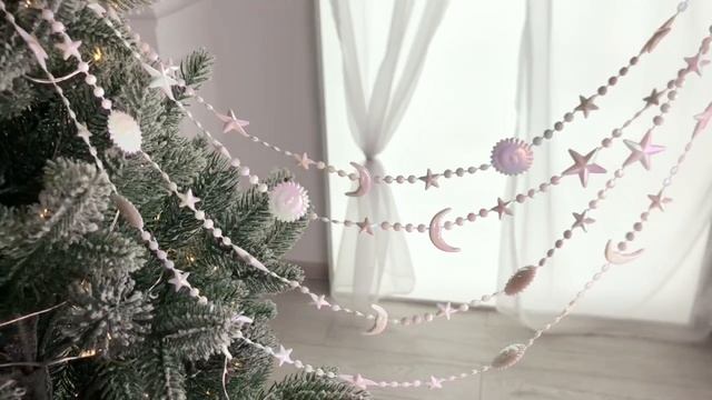 Бусы на ёлку КОСМИЧЕСКАЯ НИТЬ, пластик, белые радужные, 270 см, 1001136