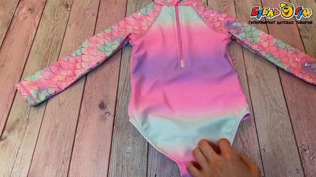 341073 Купальник Lanson Kids слитный с длинным рукавом на молнии с принтом ракушки разноцветный