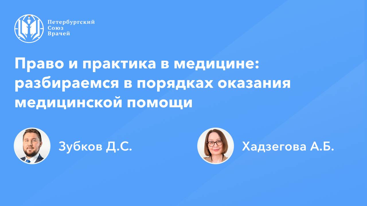 Право и практика в медицине: разбираемся в порядках оказания медицинской помощи Дата проведения: 29.08.2024, 20:00 Страница мероприятия: https://spb.doctor/i/240829/ Программа: 1. 00:02:46 Порядки оказания медицинской помощи и положение о виде медицинской помощи Зубков Дмитрий Сергеевич 2. 00:56:55 Оказание медицинской помощи при артериальной гипертензии: правила или компромисс? Хадзегова Алла Блаловна 3. 01:29:05 Ответы на вопросы О семинаре: В онлайн-семинаре будут рассмотрены порядки оказания медицинской помощи и обязанность медицинских организаций соблюдать их. Будет рассмотрена правовая природа указанных документов, освещены меры юридической ответственности за их несоблюдение, приведены примеры из юридической практики.