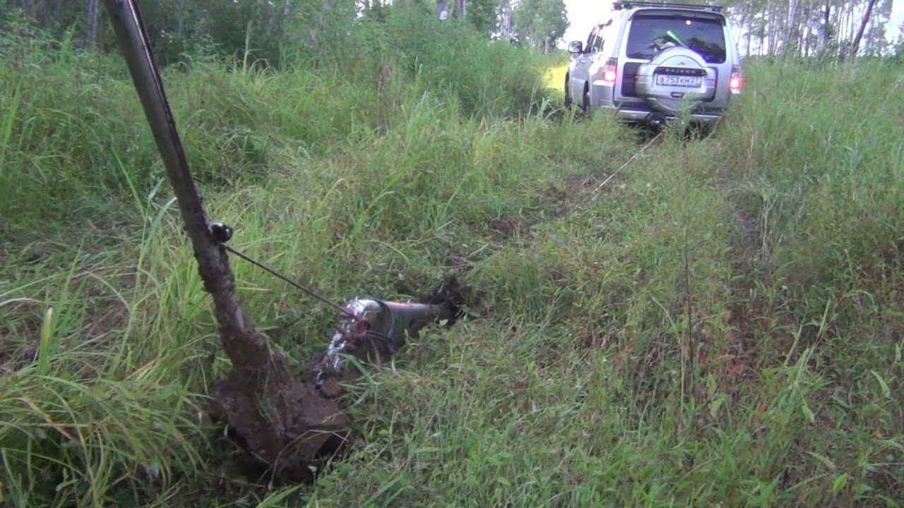 плуг, глина с травой , вытаскиваем паджеро4 на АТ резине .