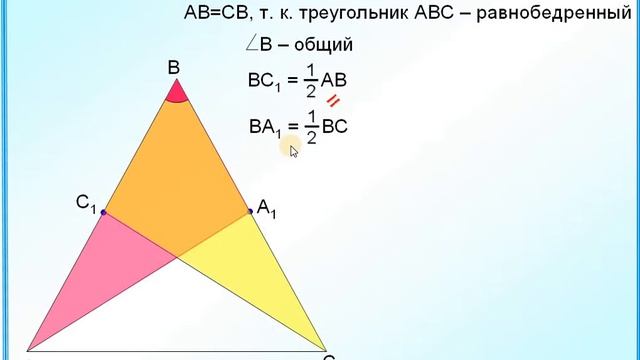 Докажите, что в равнобедренном треугольнике медианы, проведённые к боковым сторонам, равны.