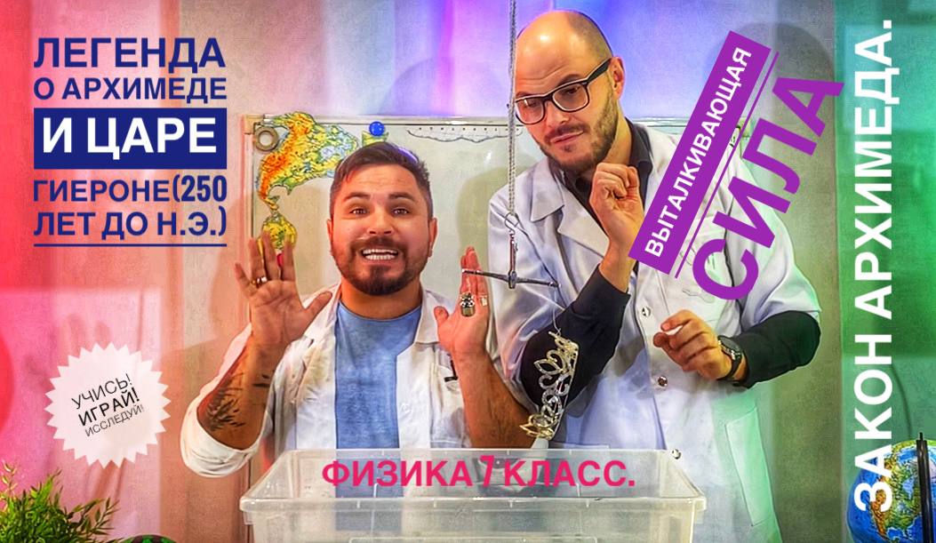 Легенда об Архимеде Существует легенда о том, как Архимед пришёл к открытию, что выталкивающая сила равна весу жидкости в объёме тела. Царь Гиерон (250 лет до н. э.) поручил ему проверить честность мастера, изготовившего золотую корону. Хотя корона весила столько, сколько было отпущено на неё золота, царь заподозрил, что она изготовлена из сплава золота с другими, более дешёвыми металлами. Архимеду было поручено узнать, не ломая короны, есть ли в ней примесь. Много дней мучила Архимеда эта задача. Взвесить корону было легко, но как найти её объём, ведь корона была очень сложной формы. И вот однажды, находясь в бане, он погрузился в наполненную водой ванну, и его внезапно осенила мысль, давшая решение задачи. Ликующий и возбуждённый своим открытием, Архимед воскликнул: «Эврика! Эврика!», что значит: «Нашёл! Нашёл!» Архимед заказал два слитка — один из золота, другой из серебра, равные весу короны. Каждый слиток он погружал поочерёдно в сосуд, доверху наполненный водой. Архимед заметил, что при погружении слитка из серебра воды вытекает больше Затем он погрузил в воду корону и обнаружил, что воды вылито больше, чем при погружении золотого слитка, а ведь он был равен весу короны. По объёму вытесненной жидкости Архимед определил, что корона была изготовлена не из чистого золота, а с примесью серебра. Тем самым мастер был изобличён в обмане, а наука обогатилась замечательным открытием. Задача о золотой короне побудила Архимеда заняться вопросом о плавании тел. В результате появилось замечательное сочинение «О плавающих телах», которое дошло до нас. В этом сочинении Архимедом сформулировано: Тела, которые тяжелее жидкости, будучи опущены в неё, погружаются всё глубже, пока не достигают дна, и, пребывая в жидкости, теряют в своём весе столько, сколько весит жидкость, взятая в объёме тел.#shorts