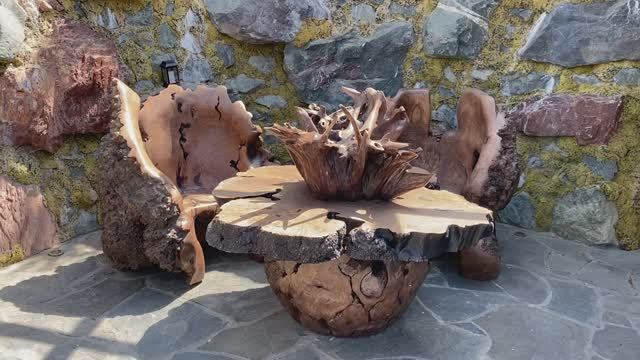 Кресло трон из дерева и стол