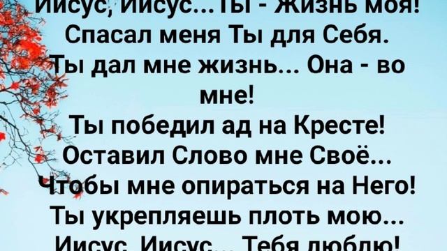 ХРИСТИАНСКИЕ ПЕСНИ ДЛЯ ХВАЛЫ И ПОКЛОНЕНИЯ ПРОСЛАВЛЕНИЯ ВООДУШЕВЛЕНИЯ ЕВАНГЕЛИЗАЦИИ #господь#музыка#христианская_музыка#музика#христианскиепесни#бог#христианскиестихи#любовь#христианство#стихи#песня#песни#иисус#иисусхристос#иисусмойбог#иисус_христос#иисусбог#иисусгосподь#хвалы_и_поклонения#хваление#хвала#прославление "ИИСУС - ТЫ ЖИЗНЬ МОЯ!" СЛОВА, МУЗЫКА: ЖАННА ВОЛКОВА-ВАРЛАМОВА Стихи Жанна Волкова (Варламова) Иисус, Иисус...Ты - Жизнь моя! Ты пролил Кровь ради меня. Чтобы Кровь Твоя текла ко мне... И защищала от беды. Чтобы Храм мой был всегда Святой... Ты увенчал меня с Собой! На мне поставил Ты Печать!!! Чтобы вечно жить на Небесах. Припев: Иисус, Иисус...Тебя люблю! Спасаешь душу Ты мою. Ты изливаешь Дух в меня... Иисус, Иисус...ведь, я - Твоя... Твоя - Невеста... Церковь - я! Иисус, Иисус...Ты - Жизнь моя! Спасал меня Ты для Себя. Ты дал мне жизнь... Она - во мне! Ты победил ад на Кресте! Оставил Слово мне Своё... Чтобы мне опираться на Него! Ты укрепляешь плоть мою... Иисус, Иисус... Тебя люблю! Припев: Иисус, Иисус...Тебя люблю! Спасаешь душу Ты мою. Ты изливаешь Дух в меня... Иисус, Иисус...ведь, я - Твоя... Твоя - Невеста... Церковь - я! Иисус, Иисус...Тебя люблю! Спасаешь душу Ты мою. Ты изливаешь Дух в меня... Иисус, Иисус...ведь, я - Твоя... Твоя - Невеста... Церковь - я! 14.02.2020 Жанна Волкова (Варламова)