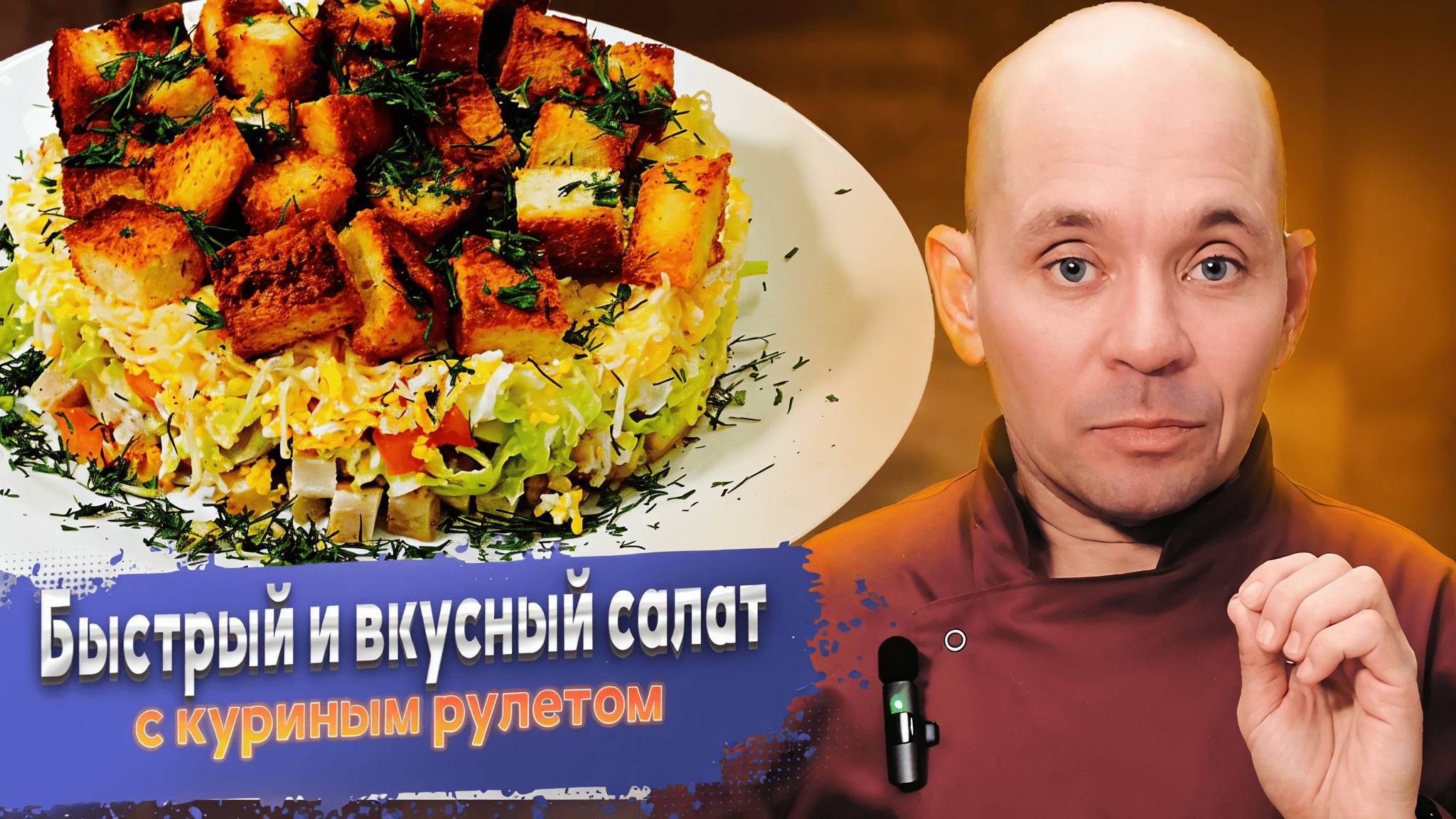 Быстрый и вкусный салат с куриным рулетом сухариками и сыром