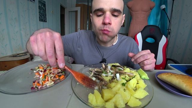 МУКБАНГ НАРЕЗКИ ЛУЧШЕЕ - КАРТОШКА / ШПРОТЫ / САЛАТ / ПИРОГ С ГОБУШЕЙ / Mukbang АСМР 08. 03. 2024