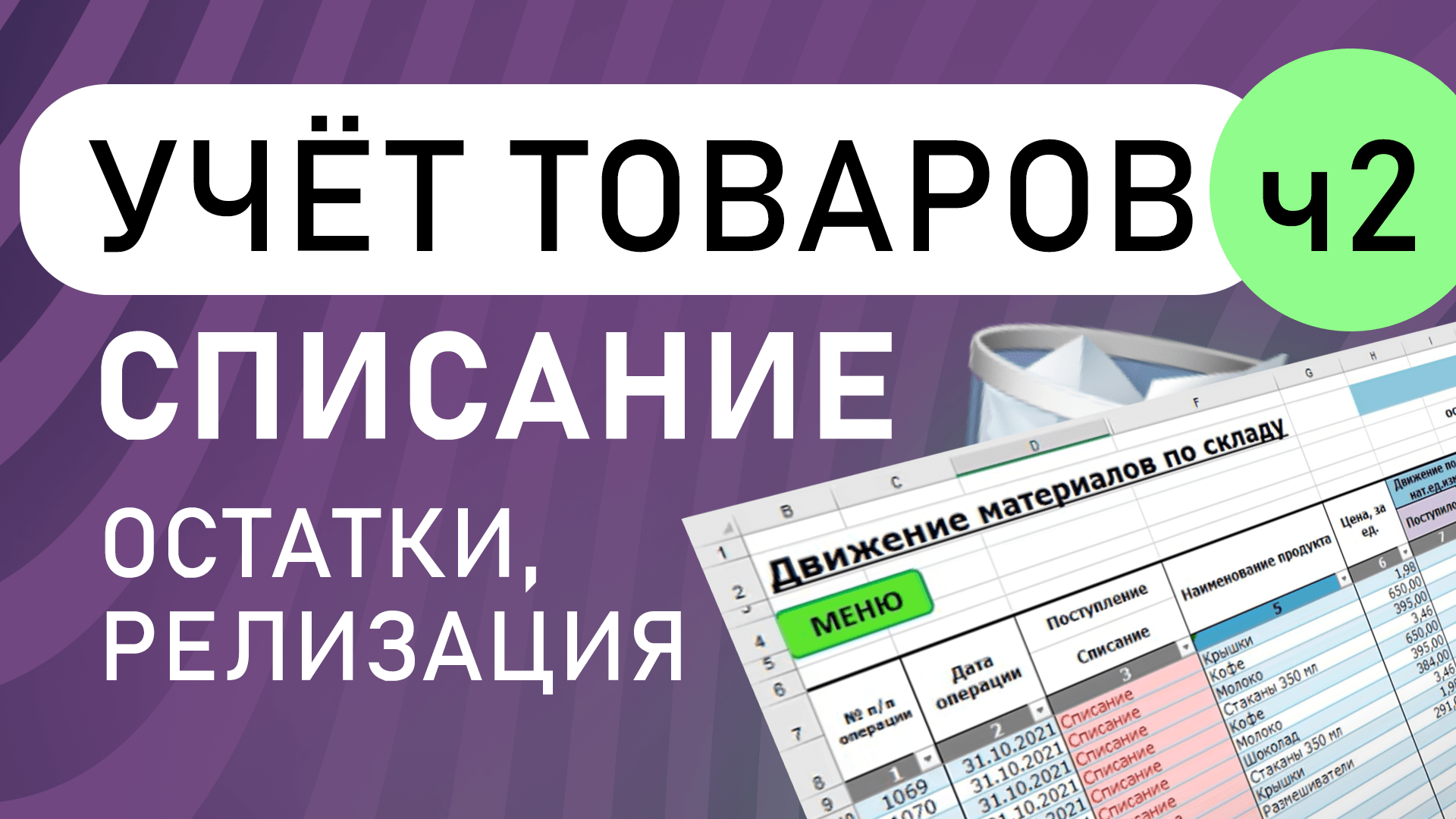 Учёт товаров, материалов, списание, остатки, реализация | Учет Excel (часть 2)