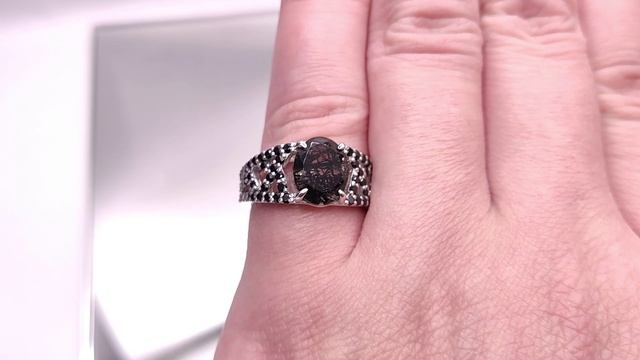 Кольцо с Кварцем с включениями чёрного Рутила 2.73 ct. и Чёрной Шпинелью. Оправа: серебро 925 пробы, покрытие - родий. Место добычи камней: Кварц - Бразилия Шпинель - Таиланд. 100% Природные камни, без облагораживания. Чистота Кварца: I2:Г2 Размер камней: Кварц - 10,0 х 8,0 х 5,45 мм Шпинель - 1,5 мм (60 шт.) Размер кольца: 18 Максимальная ширина кольца: 10 мм Общий вес кольца: 5,43 J836