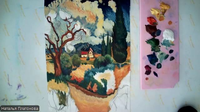 Поле, кипарисы, красный домик ч2