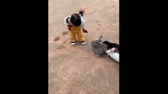 Кролики идут за маленькой девочкой