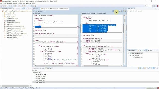 Side by Side diffs in Sigasi Studio