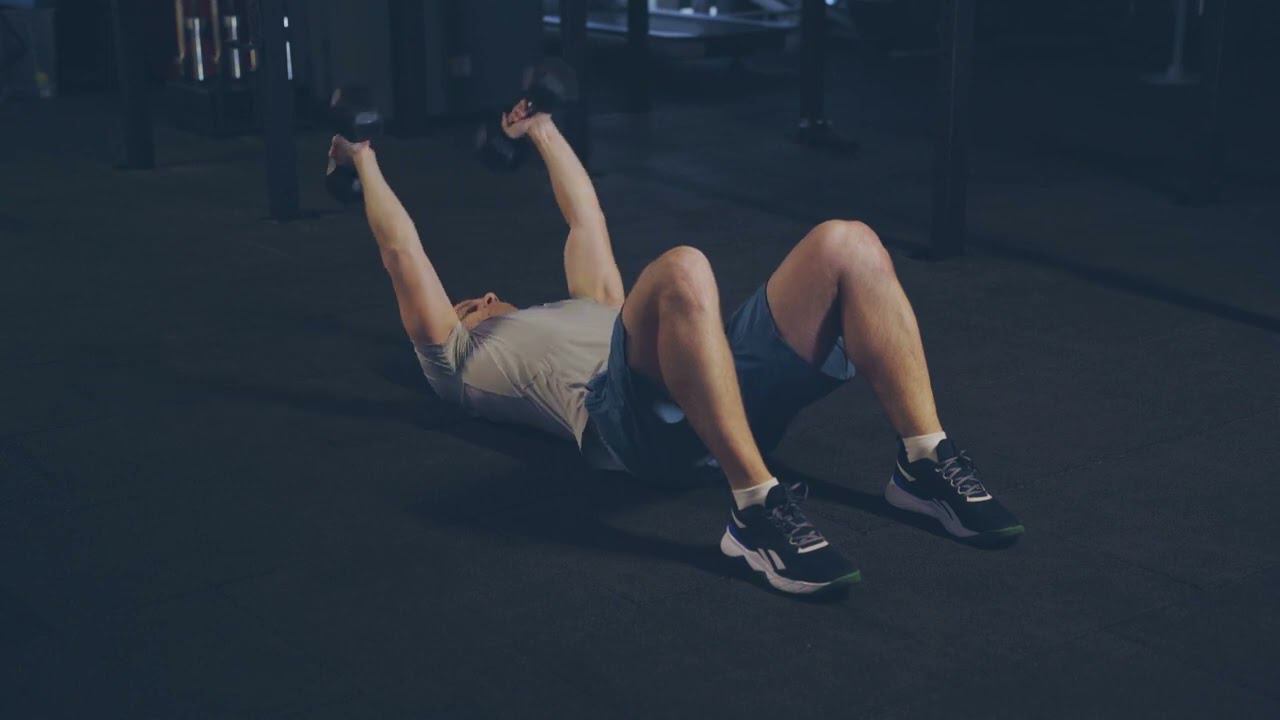 Пуловер с дмумя гантелями лежа на полу/ Dual DB floor pullover