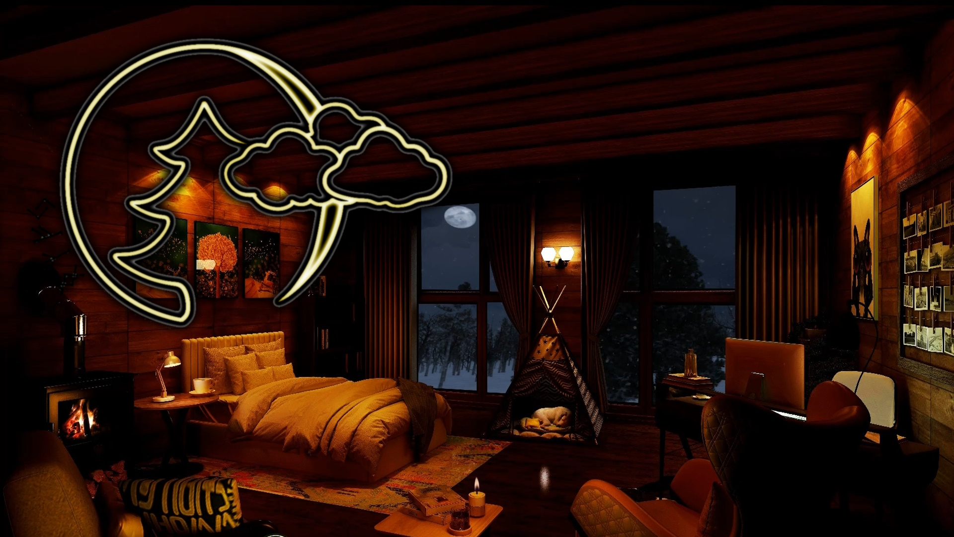 Релакс, камин, Крепкий сон в уютной зимней хижине, Расслабляющий треск камина, звуки метели, ветра
