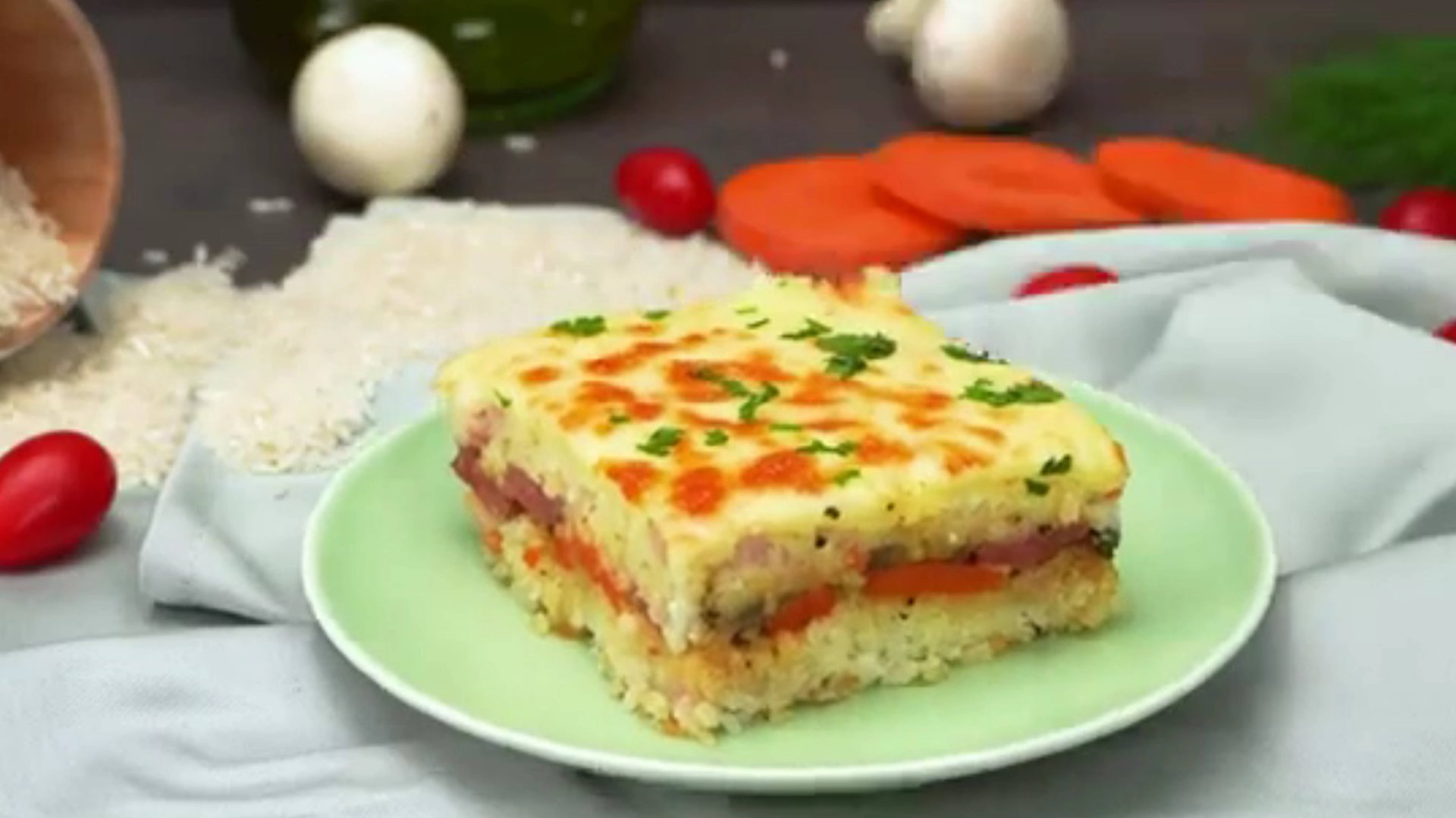 Дети обожают эту рисовую запеканку с сосисками и грибами. В духовке! Ингредиенты: пропаренный рис - 350 г сметана - 80 г сливочный сыр - 100 ветчина - 150 г лук - 1 головка морковь - 1 шт грибы - 150 г сосиски - 300 г сливки - 250 мл соль - 8 г черный перец - 5 г сладкая паприка - 5 г базилик - 5 г сыр - 200 г петрушка - 20 г Форма размером 28 X 16 см В РАЗОГРЕТУЮ ДО 180 °C ДУХОВКУ/30 МИНУТ Music: www.bensound.com Royaty Free Music: https://www.bensound.com License code: R8B3Q6F46SWLKTTS