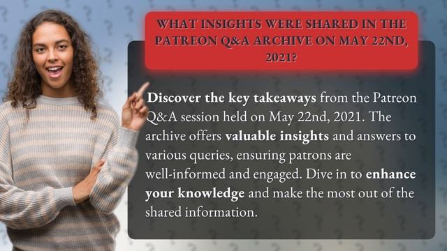 Unveiling the Gems: Patreon Q&A Archive Highlights • Patreon Q&A Archive Highlights • Explore the valuable insights and answers shared in the Patreon Q&A session held on May 22nd, 2021. Discover the key takeaways and enhance your knowledge to make the most out of the shared information. Stay well-informed and engaged with this captivating archive!