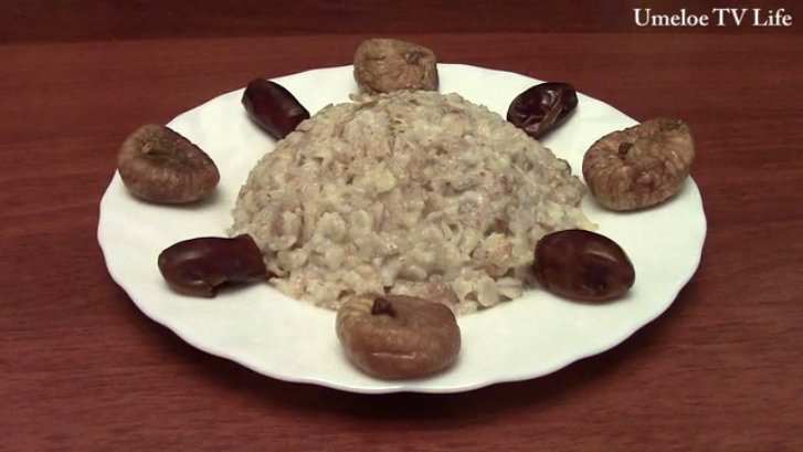 - В сегодняшнем выпуске хочу показать очень интересный и вкусный рецепт: "Как сделать вкусную и полезную кашу своими руками в домашних условиях". Нам понадобится: 1. 400 гр. хлопьев (овсяных или других). 2. 100 гр. фиников. 3. 100 гр инжира. 4. 0,5 стакана сахара. Желаю Вам приятного аппетита!!!