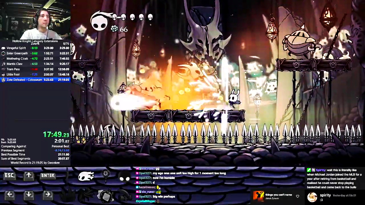 Hollow Knight - Zote% in 21m 05s by (Seychelles) Gwonkee - 1st place. (Gwonkee - youtube)