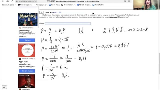 Сегодня разбираем одно из самых легких заданий профильного ЕГЭ по математике. Оно есть и в базе, и даже в ОГЭ. Хочешь научиться решать задачи на сложную вероятность? Для тебя мой тематический курс https://mathsolodova.tilda.ws/#rec406988844 Нужна комплексная подготовка к профильному ЕГЭ? Выбирай курс Свободный https://mathsolodova.tilda.ws/#rec407013765#!/tproduct/694496208-1285509903090