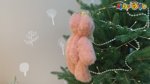 333597 Украшение елочное Медвежонок с бантиком розовый 12см