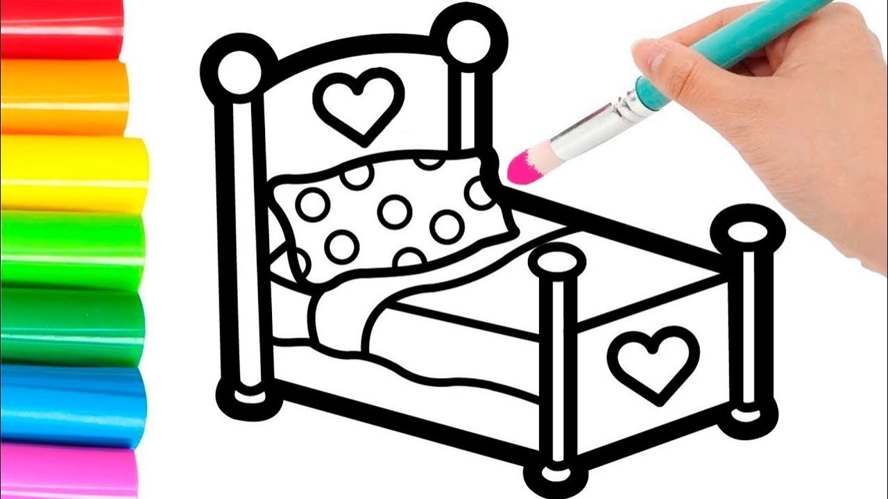 Как нарисовать кровать. Рисунок раскраска