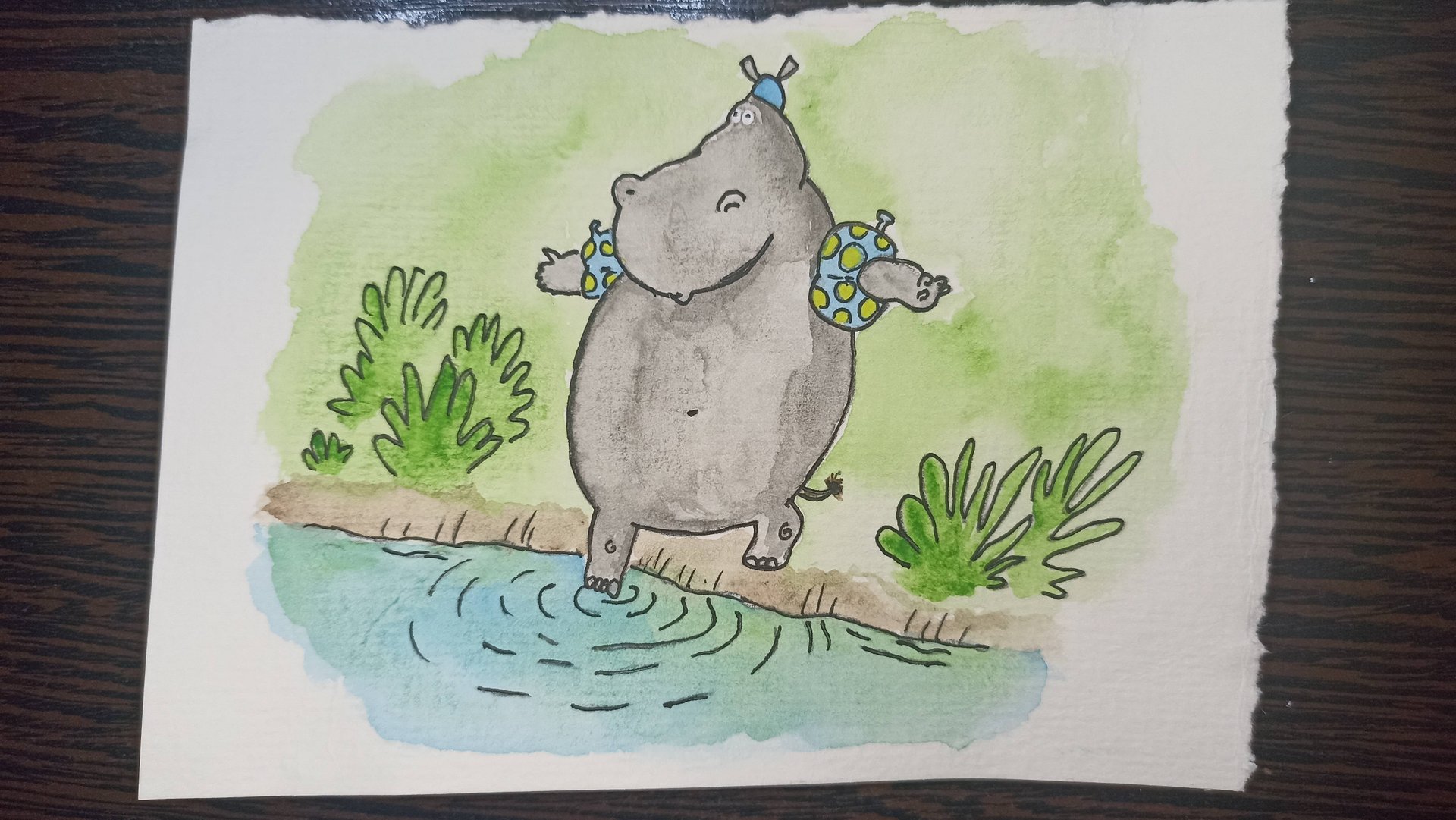 Рисунок акварелью / Бегемот