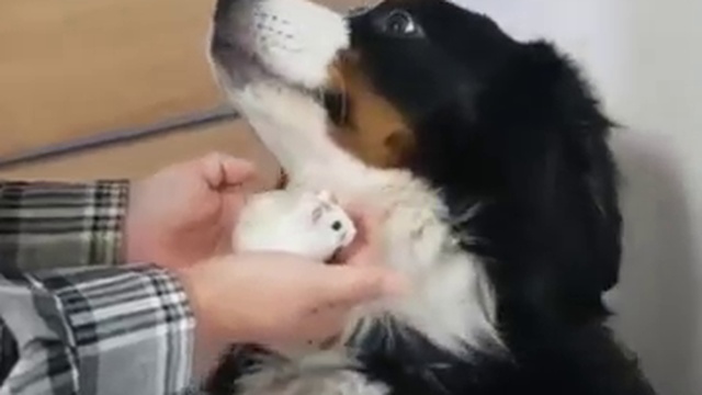 Собака испугалась хомяка