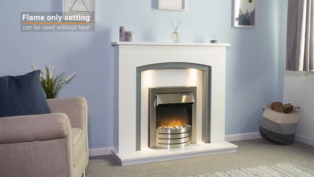 Adam Savanna Fireplace in Pure White & Grey with Downlights & Comet Electric Fire in Brushed Steel