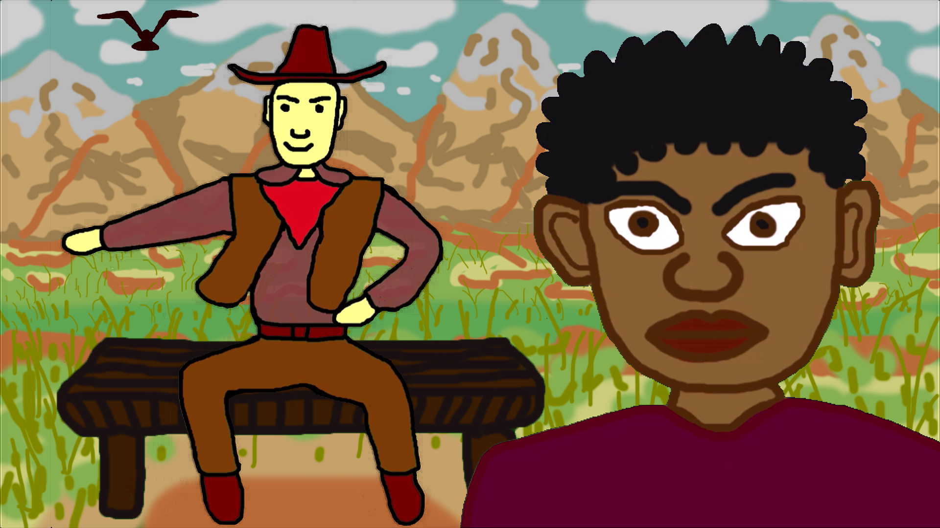 Анимационное видео: Два персонажа и птица