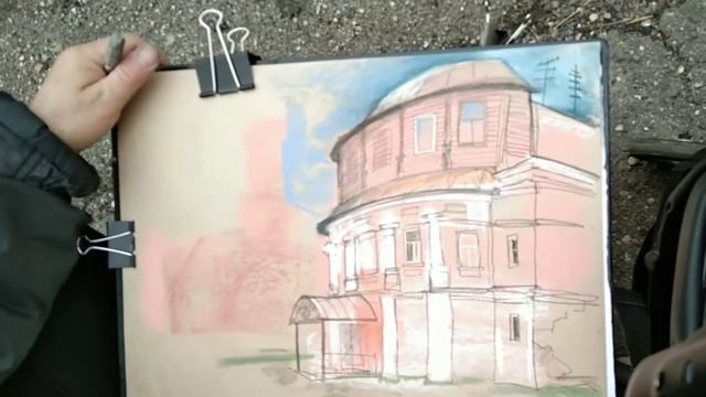 Углич Городская зарисовка пастелью UrbanSketch Sketching Demo archisketch graphics