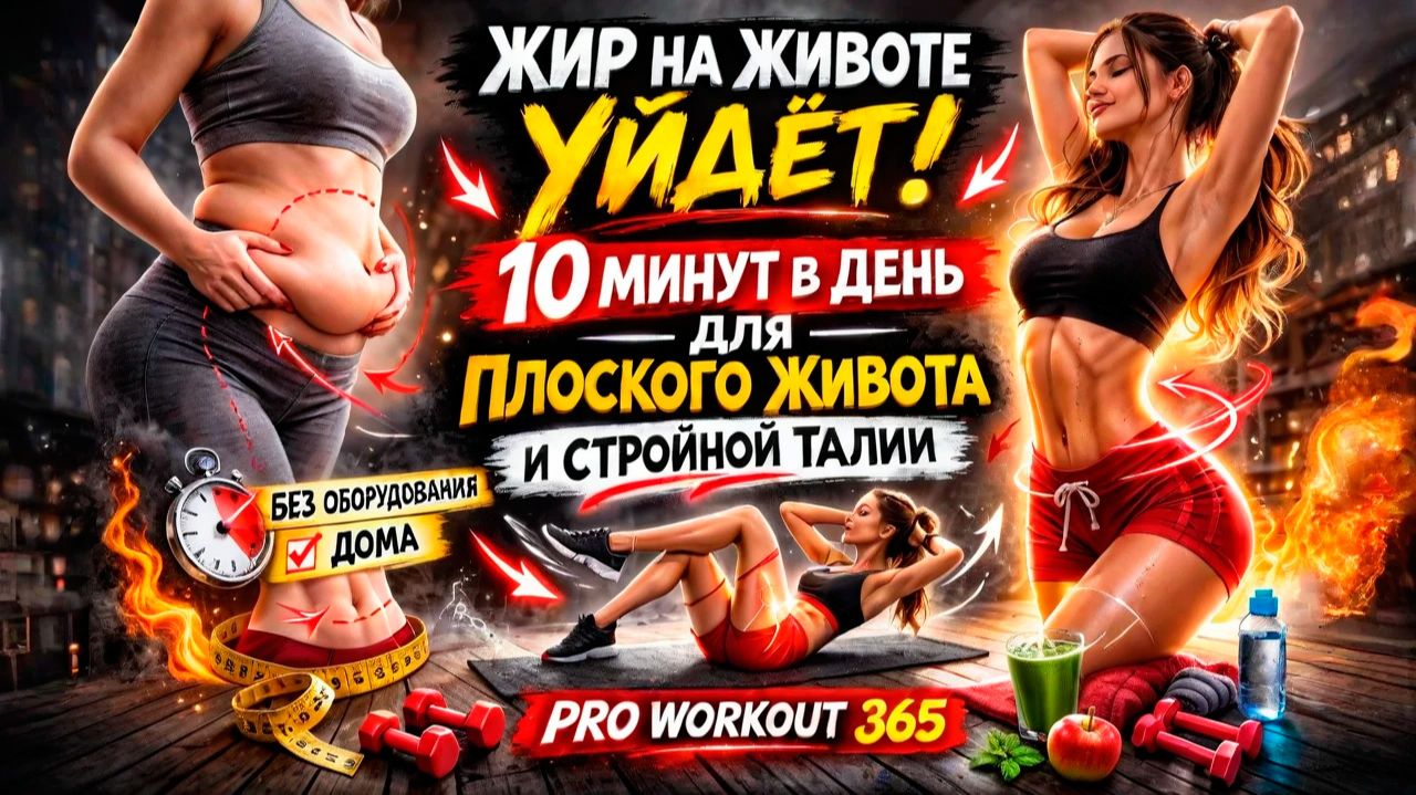 Хочешь убрать живот и сделать талию стройной, не выходя из дома? Эта тренировка создана специально для сжигания жира в области живота и укрепления пресса 💪🔥 Всего 10 минут в день — и ты почувствуешь разницу уже через несколько недель. ⚡ Подходит для новичков ⚡ Без оборудования ⚡ Можно выполнять дома Что тебя ждёт: ✔️ Упражнения для сжигания жира ✔️ Акцент на нижний и верхний пресс ✔️ Ускорение метаболизма ✔️ Формирование подтянутой талии ⚠️ Важно: ⏱️ Начни с разминки — не перегружай тело с первого движения. ⏱️ Если тяжело — увеличь отдых на 5–10 секунд. ⏱️ Выполняй 2–3 круга в зависимости от уровня подготовки. ⏱️ Лучший результат будет при правильном питании и регулярности. Помни: плоский живот — это не магия. Это дисциплина. Делай каждый день. PRO WORKOUT 365 💪 🔥 Напиши в комментариях: «День 1» — если начинаешь сегодня! #плоскийживот #тренировкадома #пресс #жирнаживоте #workout #proworkout365