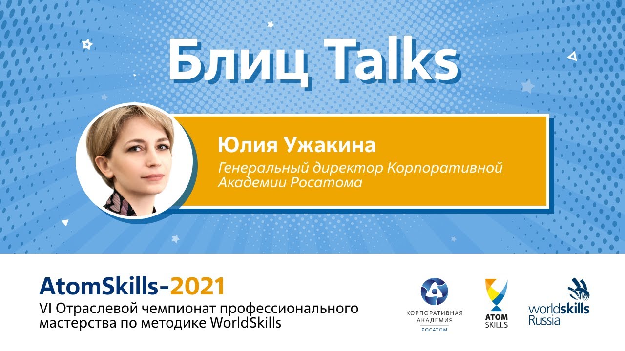 #БлицTalks AtomSkills-2021 Юлия Ужакина, генеральный директор Корпоративной Академии Росатома #АкадемияРосатома #БесконечноеРазвитие #БлицTalks #AtomSkills