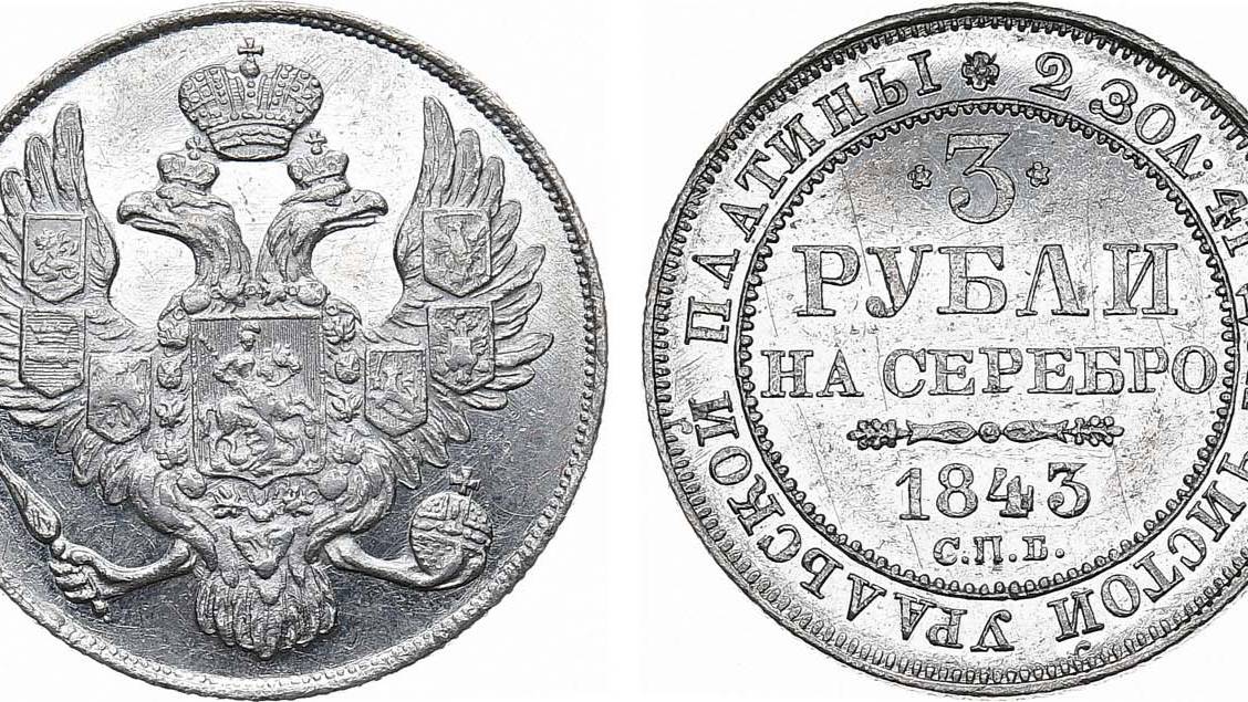 Интернет-аукцион 63. Лот 958 - 3 рубля 1843 года. СПБ.