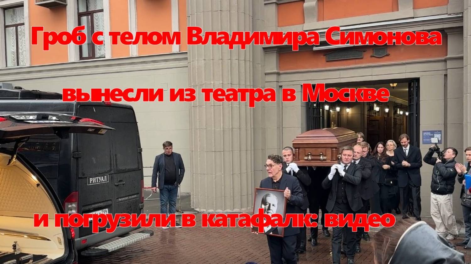 Гроб с телом Владимира Симонова вынесли из театра в Москве и погрузили в катафалк: видео