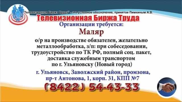 Вакансии и телефоны прямых работодателей в специализированной программе по трудоустройству "Телевизионная Биржа Труда" - г.Ульяновск