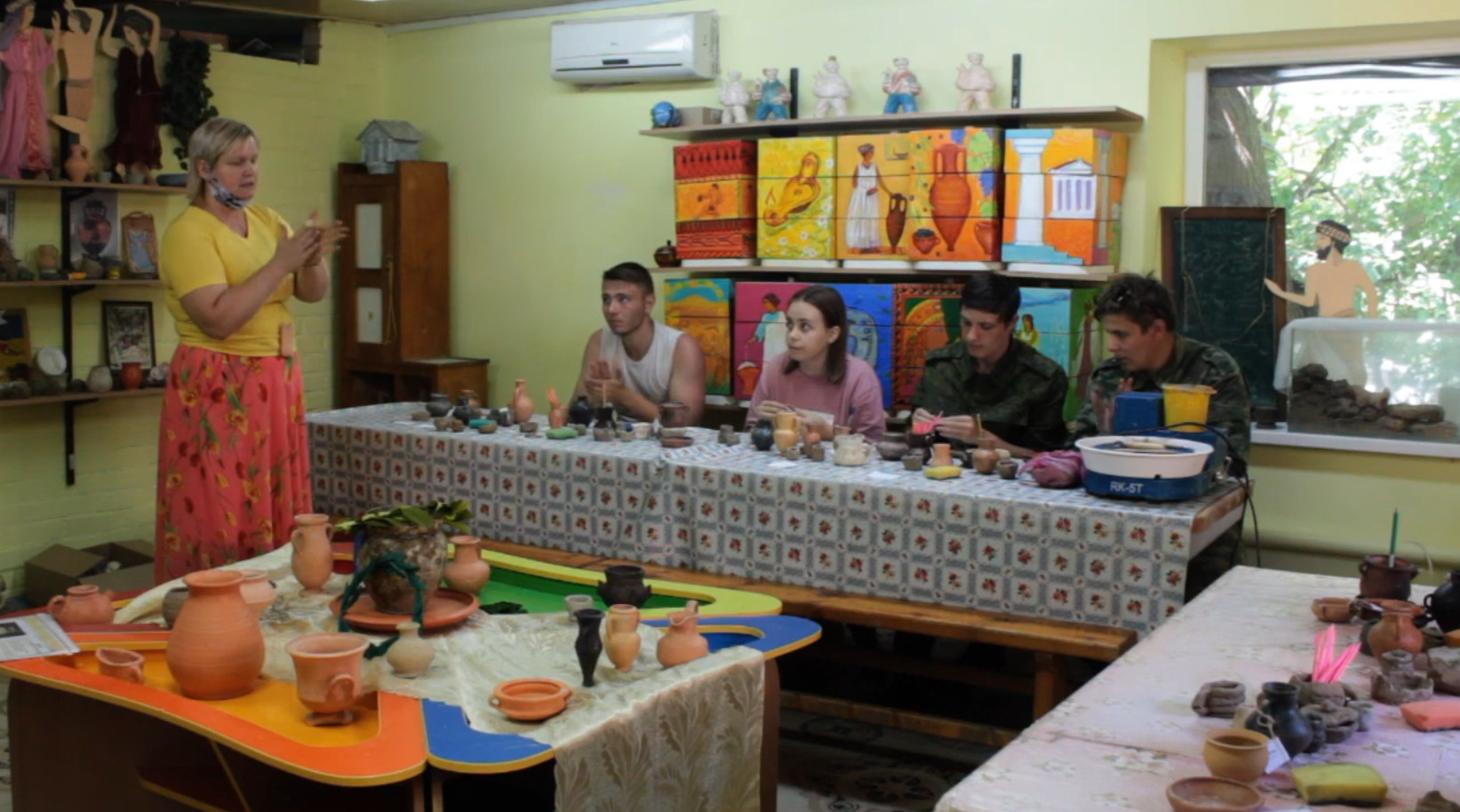 Студентам Таганрогского института им. А. П. Чехова проводят мастер-класс по гончарному ремеслу.