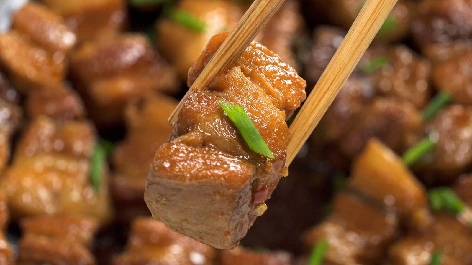 Приготовьте тушеную свиную грудинку в соевом соусе на сковороде - адаптированный вариант одного из самых любимых и популярных мясных блюд азиатской кухни. Свинина получается нежная и тает во рту, вкус сложный, пряный и утонченный. Блюдо подходит для ужина и на праздник, подавать можно с любым гарниром или отдельно, как мясную закуску, посыпав зелёным луком. Также мясо можно подать с лапшой быстрого приготовления, в дополнение можно сварить яйца - получится простой и вкусный вариант ужина. Ингредиенты: Свиная грудинка - 1 кг Чеснок - 5 зубчиков Имбирь - 15 г Зеленый лук - 20 г Лавровый лист - 2 шт Перец чили хлопья - 1 ч.л. Соевый соус - 80 мл Рисовый уксус - 2 ст.л. Сахар - 2,5 ст.л. Вода - 500 мл Как приготовить свинина в соевом соусе: 1. Свиную грудинку нарезать на кусочки 2-3 см, перья лука - крупно, чеснок и имбирь нарезать ломтиками. 2. Сковороду нагреть на среднем огне, добавить грудинку, обжарить до золотистой корочки 12-15 минут на среднем огне. 3. Добавить в зеленый лук, чеснок, имбирь. Перемешать. Обжарить 1 минуту на среднем огне. 4. Добавить сахар, перец чили хлопья, лавровый лист, уксус, соевый соус, воду, перемешать. Довести до кипения, огонь убавить до минимального и готовить под крышкой 1 час. 5. Спустя час снять крышку, увеличить огонь до сильного и готовить еще 10 минут, помешивая, чтобы соус загустел. 6. С помощью ложки удалить вытопленный жир. 7. Подавать свинину в соевом соусе, посыпав зеленым луком в качестве мясной закуски или с любым гарниром лапшой, рисом или овощами. Советы: 1. Используйте по вкусу любимые специи и приправы. 2. Перец чили хлопья можно заменить на свежий перец чили. 3. Готовое блюдо можно хранить в холодильнике, затем разогреть и подавать к лапше быстрого приготовления. 4. Вытопленный жир можно перелить в банку и хранить в холодильнике, использовать при приготовлении жареного картофеля. 5. Рисовый уксус можно заменить на яблочный, винный или столовый, сократив количество. Друзья, если вам понравилось видео, вы можете помочь в развитии канала: Поделитесь этим видео с друзьями в социальных сетях. Рецепт сохранится в вашей соцсети! Оцените видео это очень важно для развития канала! НАПИСАТЬ КОММЕНТАРИЙ или хотя бы улыбнуться. Я буду очень рад! Сотрудничество - Тг. @YuriKanteev