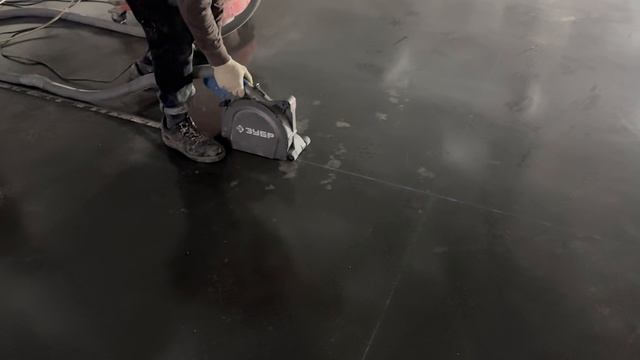 Швы в промышленных бетонных полах с топпингом. Пример нарезки шва при помощи штробореза и промышленного пылесоса. Промышленные полы