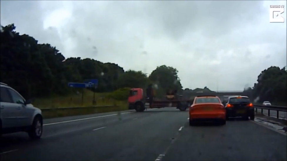 На трассе грузовик начало бросать из стороны в сторону, пока в итоге не развернуло. Обошлось без жертв.