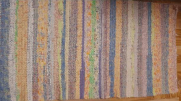 Коврик из полос ткани. Мой способ соединения полос ткани при вязании половика.