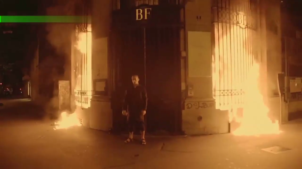 Видеокадры поджога здания Банка Франции художником-акционистом Петром Павленским